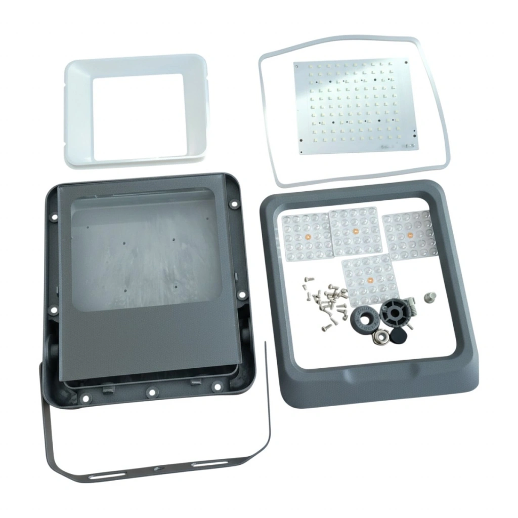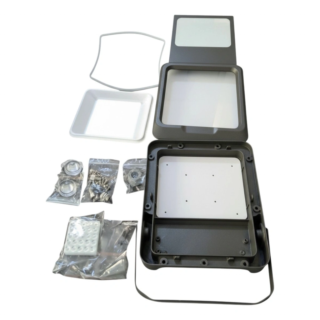 Demonte boş kasa tasarımı, montaj, bakım ve servis işlemlerini kolaylaştırırken, farklı 50 Watt LED modül ve sürücü seçenekleriyle uyumlu kullanım imkânı sağlar. Ürün üzerinde kullanılan 130° ışımaya sahip lens, geniş alanlarda homojen ışık dağılımı sağlayarak etkili bir aydınlatma performansı sunar.