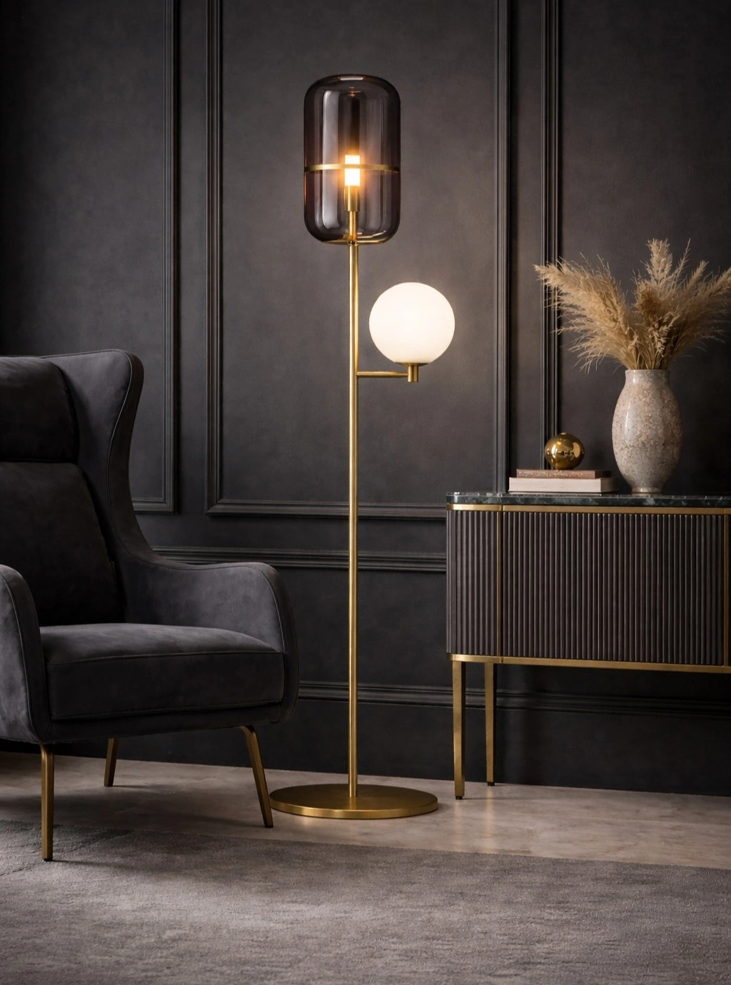 Mekânlarda özellikle köşelerde, oturma gruplarında veya vurgulanmak istenen alanlarda konumlandırıldığında hem fonksiyonel aydınlatma sağlar hem de estetik bir odak noktası oluşturur. Yüksek kalite malzemeler ve dikkatle işlenmiş yüzey detaylarıyla premium zemin lambası segmentine güçlü bir örnektir.