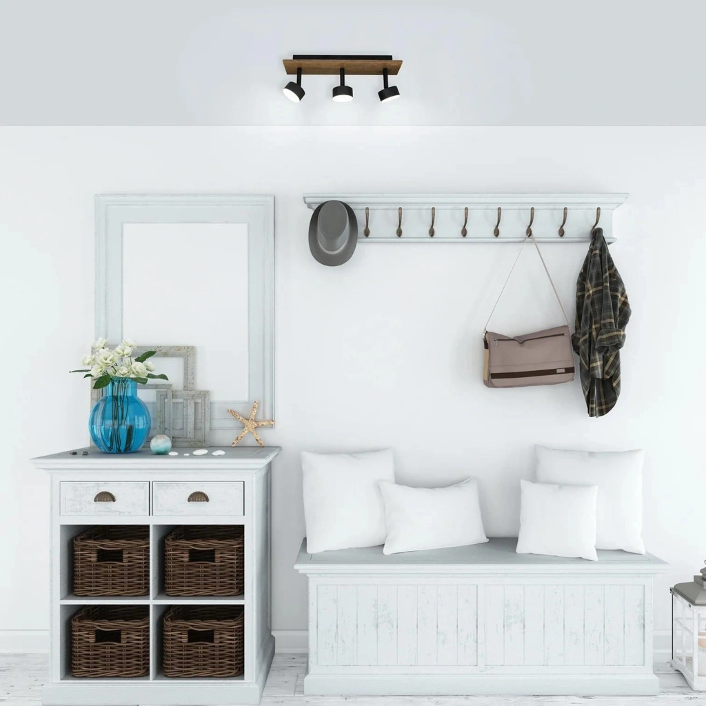 Linea Midi LED Plafonyer, ahşap gövde, dikdörtgen lineer tasarım ve 3 dışa dönük LED spot ile modern yaşam alanlarında hem estetik hem fonksiyonel aydınlatma sağlar. 30x10 cm boyutları ile kompakt ve şık bir tasarım sunar ve yaklaşık 2 m² aydınlatma alanı ile küçük alanlar için idealdir.