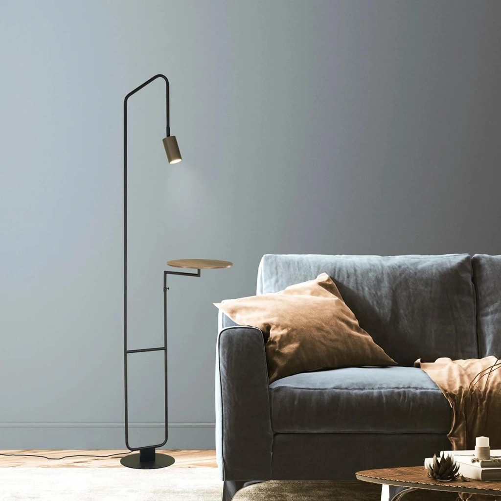 Bu modern lambader, okuma köşeleri, çalışma alanları veya küçük salonlar için idealdir. Hem ayaklı lambader ihtiyacını karşılar hem de altındaki sehpa ile kitap, fincan veya dekoratif objelerinizi koymanıza olanak tanır.