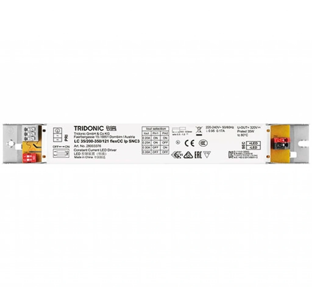 Tridonic 50.2 W Selectable Constant Current LED Driver, iç mekan LED armatürleri için optimize edilmiş, yüksek performanslı ve güvenli bir sabit akım sürücüsüdür.