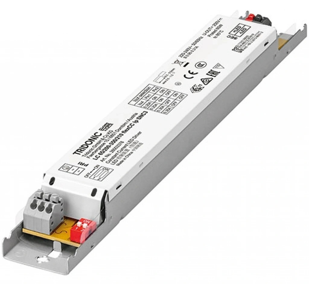 Tridonic 65.1 W Selectable Constant Current LED Driver, iç mekan LED armatürleri için geliştirilmiş yüksek performanslı ve güvenli bir sabit akım sürücüsüdür.